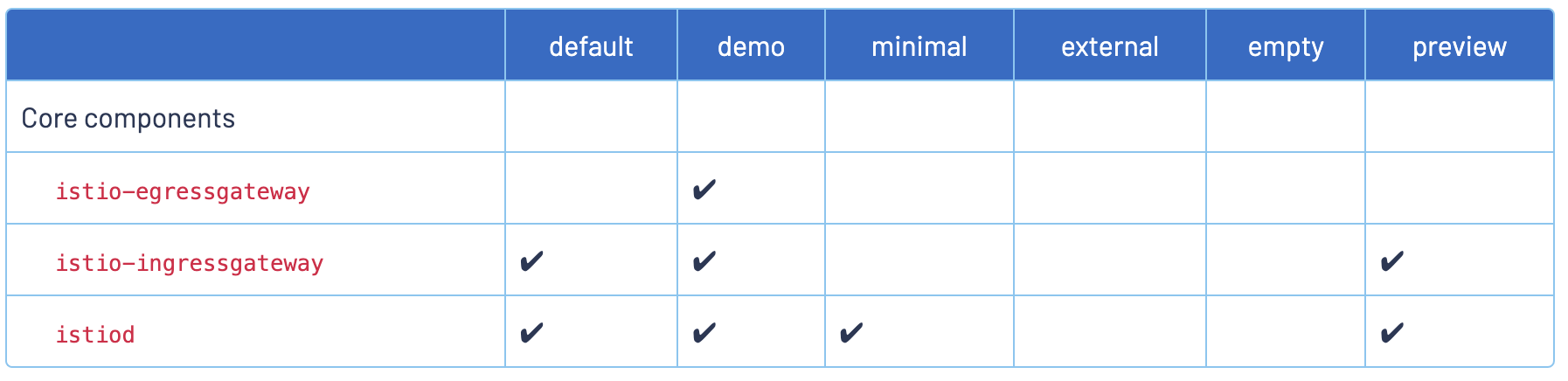 - preview: the preview profile contains features that are experimental. This is intended to explore new features coming to Istio. Stability, security, and performance are not guaranteed - use at your own risk.