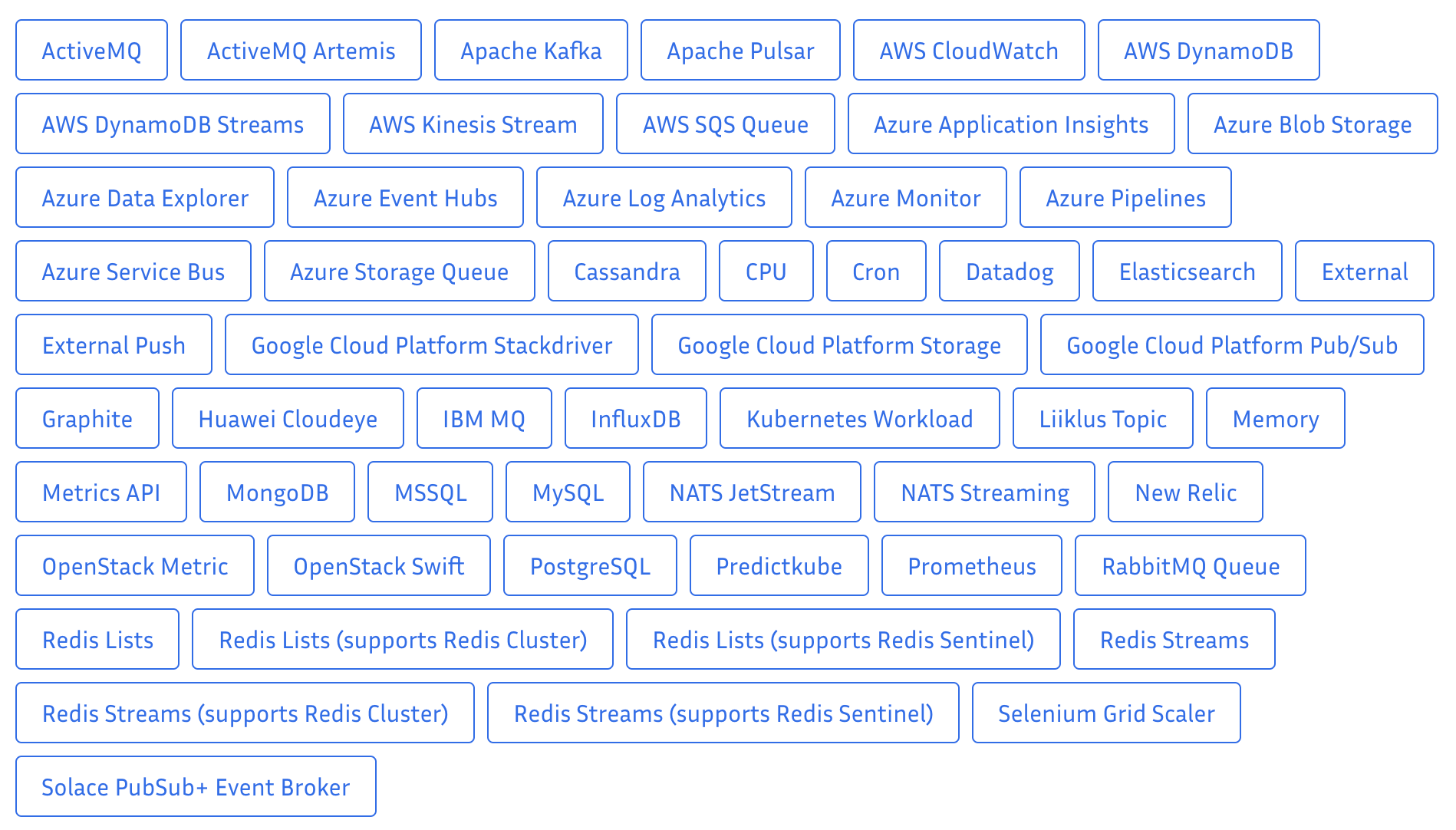 External Trigger Source로 활용할 수 있는 metric은 아래와 같다.